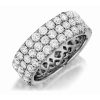 Commemorate your love with this sleek wedding band for Ladies. This vintage wedding band appeals to both the contemporary and classic. The platinum emanates fire and brilliance. Luminous white diamond stones catch your eye with their shine and glow. These are cut into round shapes with unparalleled detail and is then kept in a secure prong setting in a practical and fashionable way.