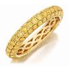 Express your commitment and love with this luxurious wedding band for Ladies. This modern wedding band is one you will cherish forever. The 18 karat yellow gold has been expertly polished to give it an immaculate sparkle. Shining fancy yellow diamond stones catch your eye with their shine and flow. These are carefully cut into round shapes with great detail and is then kept in a secure pave setting in order to protect each stone.