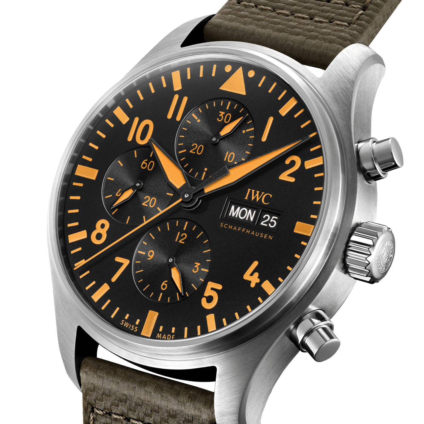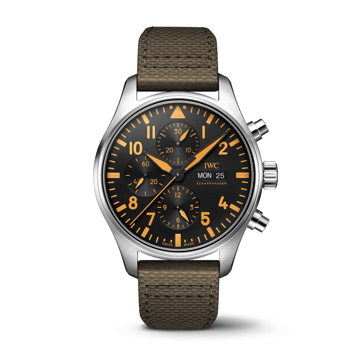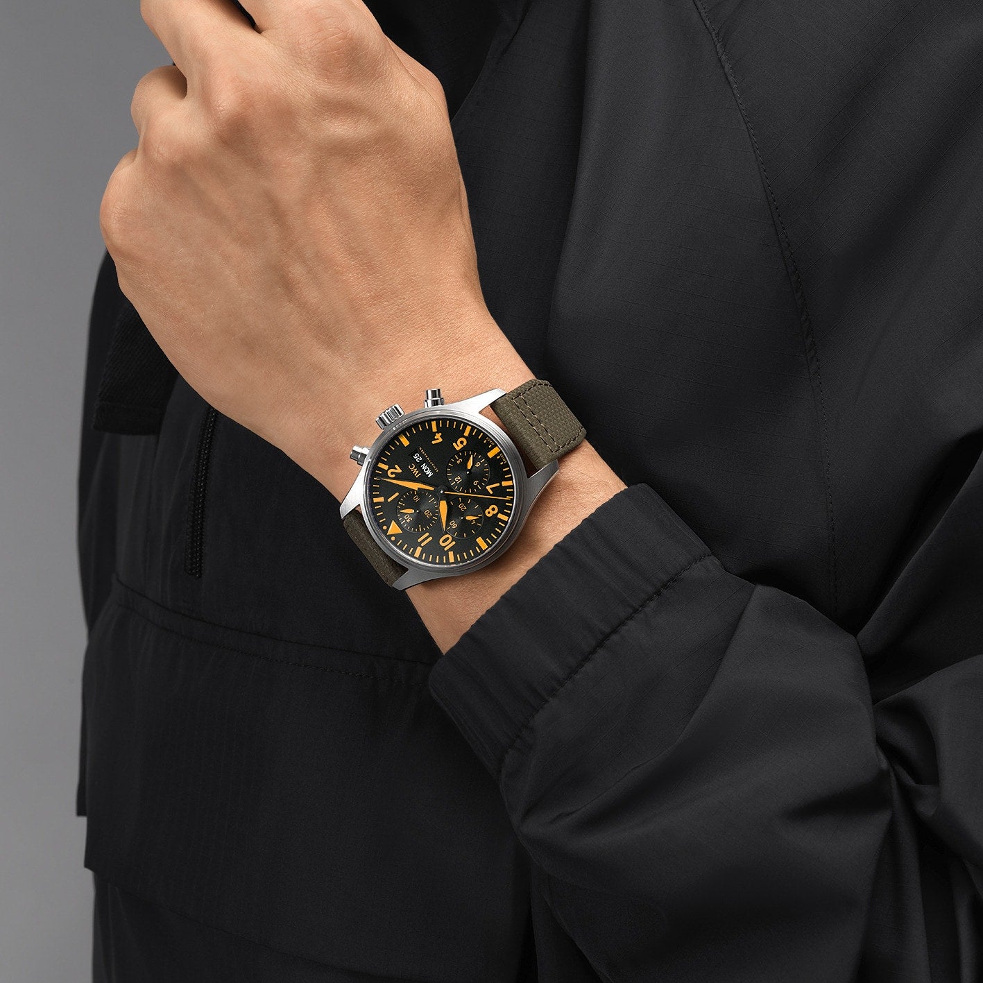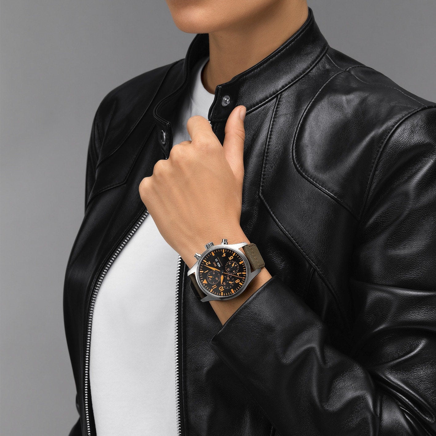 Stainless steel case, Automatic, self-winding, Diameter 43.0 mm, Black dial with luminescence, Green calfskin strap, Strap width 21.0 mm.