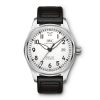 The Pilot’s Watch Mark XVIII is housed in a 40-millimetre stainless-steel case with a dial that is uncompromisingly reduced to the essentials. Not even a single line is unnecessary – everything is designed to be clear and legible. The brilliant white hands on the silver-plated dial have a luminescent coating and a black outline and guarantee optimum legibility by day or night. The dial features large, rounded Arabic numerals to mark the minutes, with two exceptions: the 12 has been replaced with a white triangle with dots at either side, while the date window is positioned where the 3 would usually be. The watch, which is water-resistant to 6 bar, is powered by an automatic 35111-calibre movement and has a 42-hour power reserve. With its soft-iron inner case for protection against magnetic fields and a front glass secured against displacement by sudden drops in pressure, the Pilot’s Watch Mark XVIII takes up the tradition established by its historic forebear, the legendary Mark 11. The watch comes with a black calfskin strap.