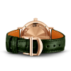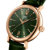 18 ct 5N gold case, Automatic, self-winding, Diameter 34.0 mm, Green alligator leather strap by Santoni with quick-change system, Strap width 16.0 mm.
