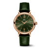 18 ct 5N gold case, Automatic, self-winding, Diameter 34.0 mm, Green alligator leather strap by Santoni with quick-change system, Strap width 16.0 mm.