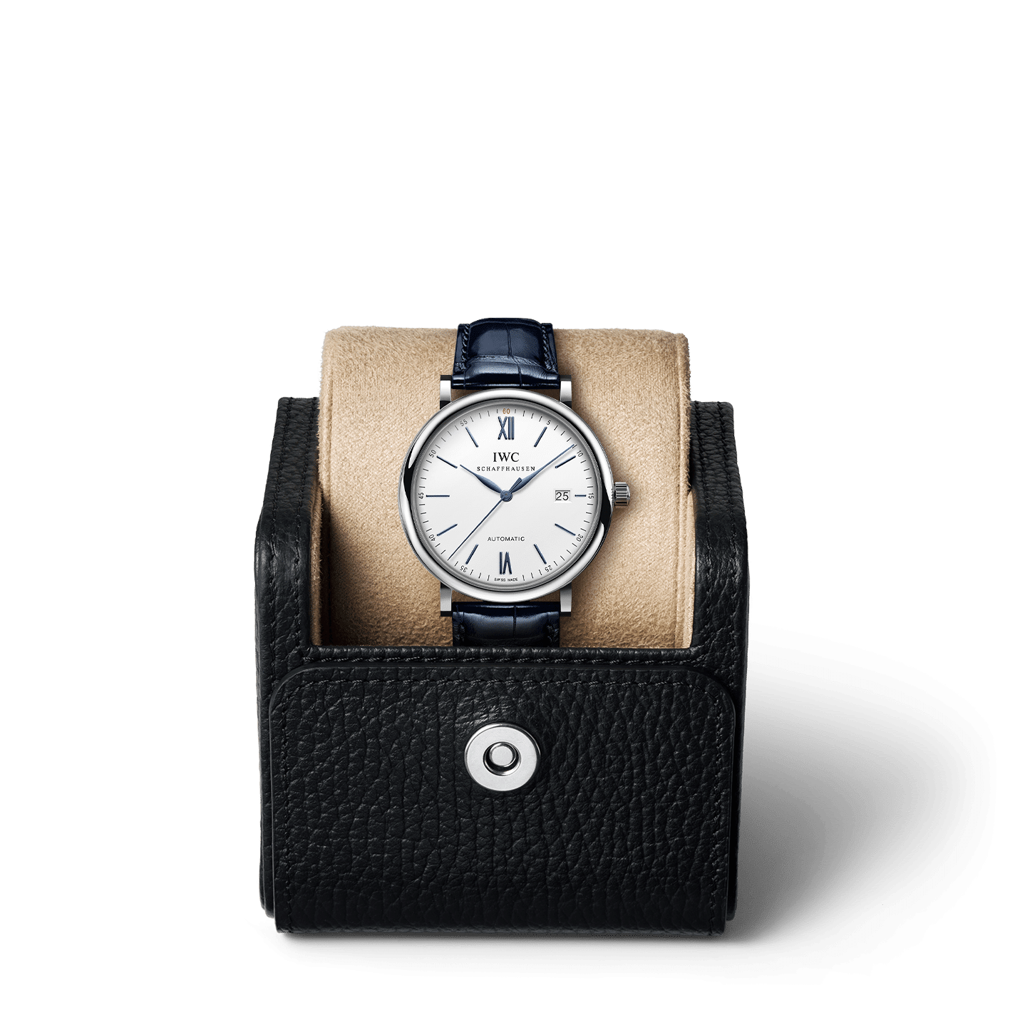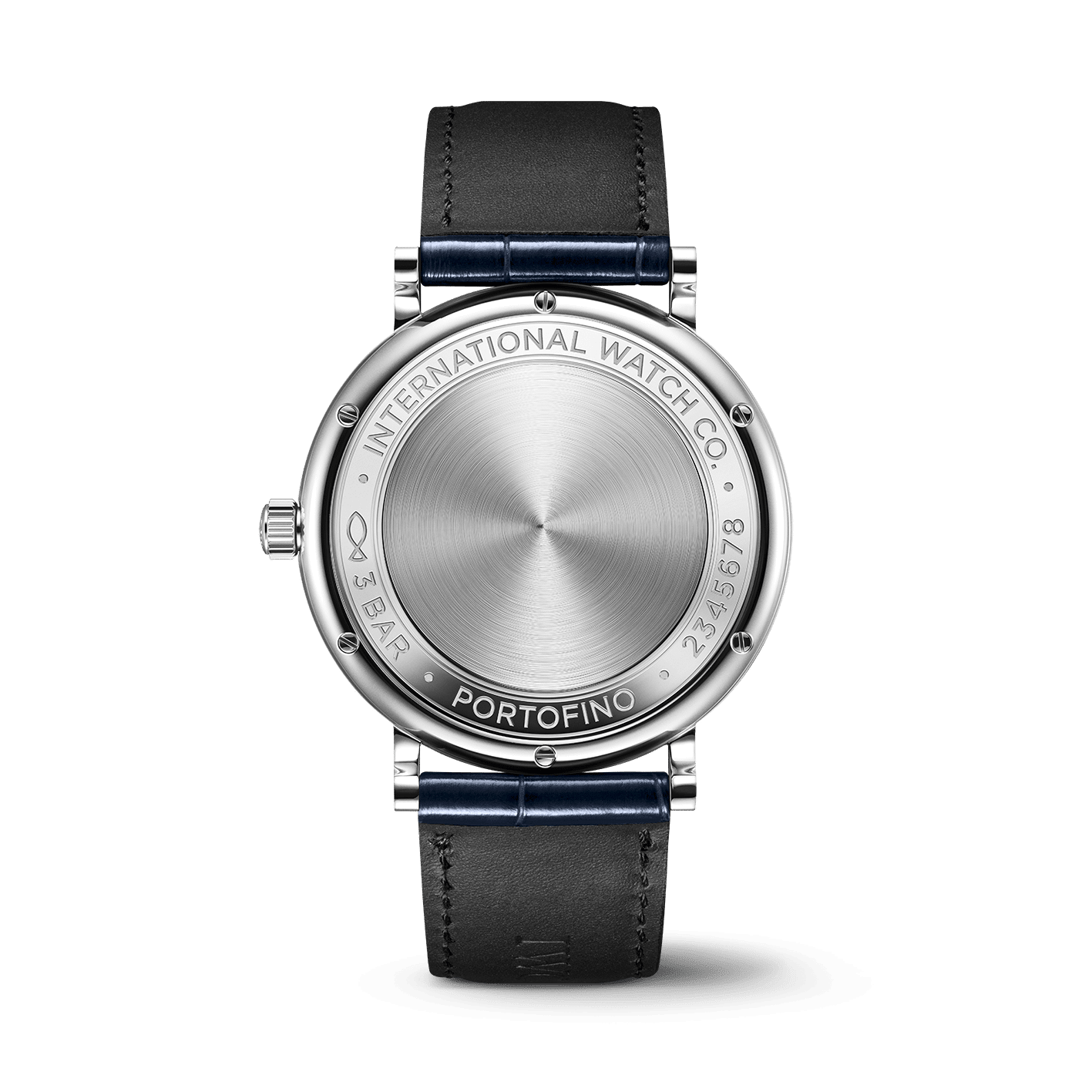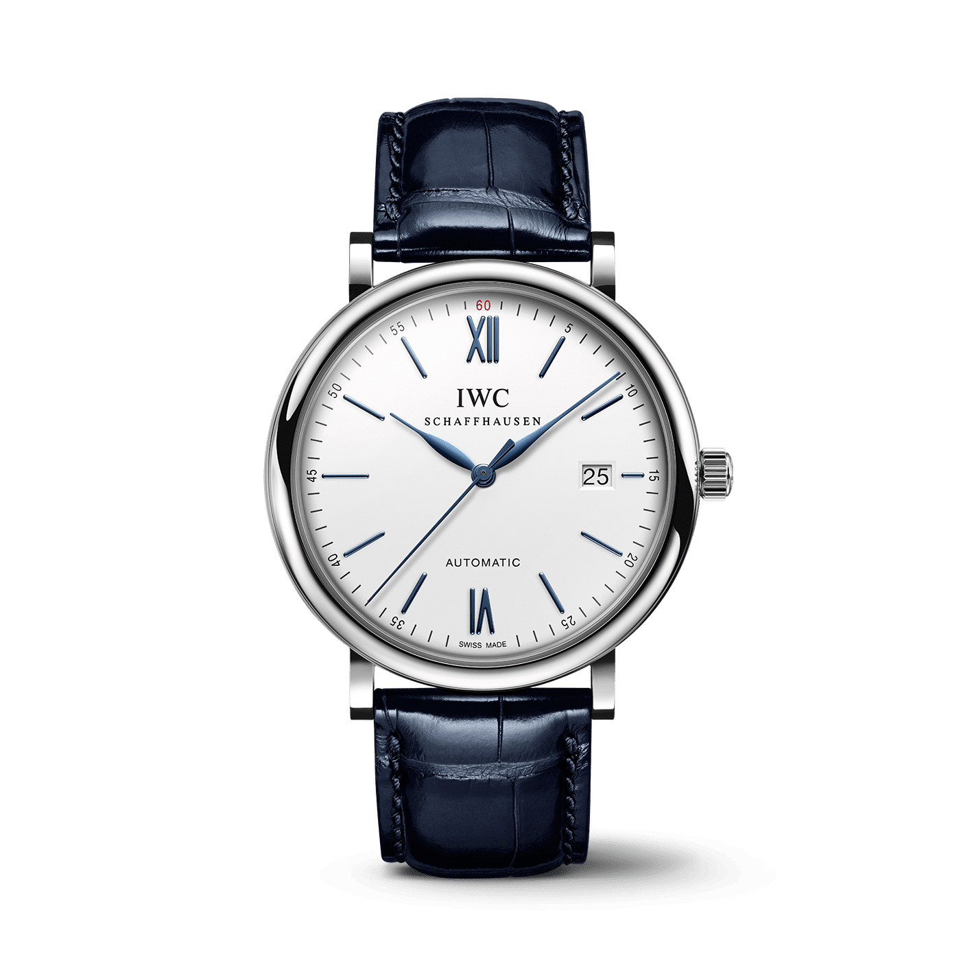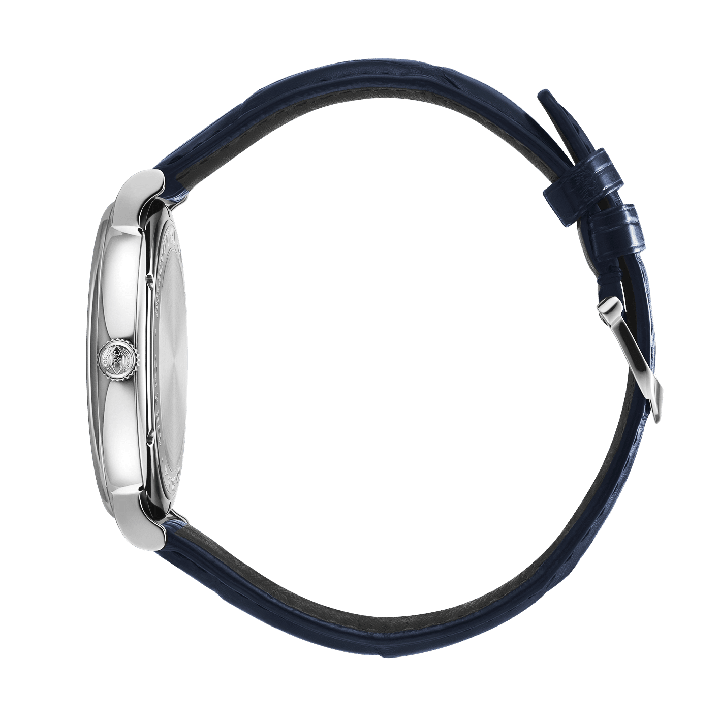 Stainless steel case, Automatic, self-winding, Diameter 40.0 mm, Blue alligator leather strap, Strap width 20.0 mm.