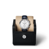 Stainless steel case, Automatic, self-winding, Diameter 39.0 mm, Blue alligator leather strap, Strap width 20.0 mm.