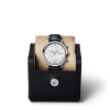 Stainless steel case, Automatic, self-winding, Diameter 42.0 mm, Blue alligator leather strap, Strap width 20.0 mm.