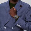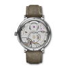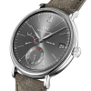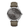 Stainless steel case, Manual-winding, Diameter 45.0 mm, Grey suede strap, Strap width 22.0 mm.