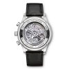 The Portugieser Chronograph is one of IWC Schaffhausen’s most iconic models. With its compact diameter of 41 millimetres, it fits almost any wrist. However, the thin bezel gives one the impression of wearing a significantly larger watch. The clear, functional dial boasts applied Arabic numerals and slender Feuille hands. Printed with a quarter-second scale, the characteristic réhaut not only allows precise reading of the stop time but also reminds us of the Portugieser’s origins as a nautical precision instrument for the wrist. This model features a stainless steel case, a black dial, as well as rhodium-plated hands and appliqués; it is fitted with a black alligator leather strap. Inside the sporty-elegant chronograph, the IWC-manufactured 69355 calibre is at work. The robust and precise chronograph movement in classic column-wheel design is visible through a sapphire-glass case back.