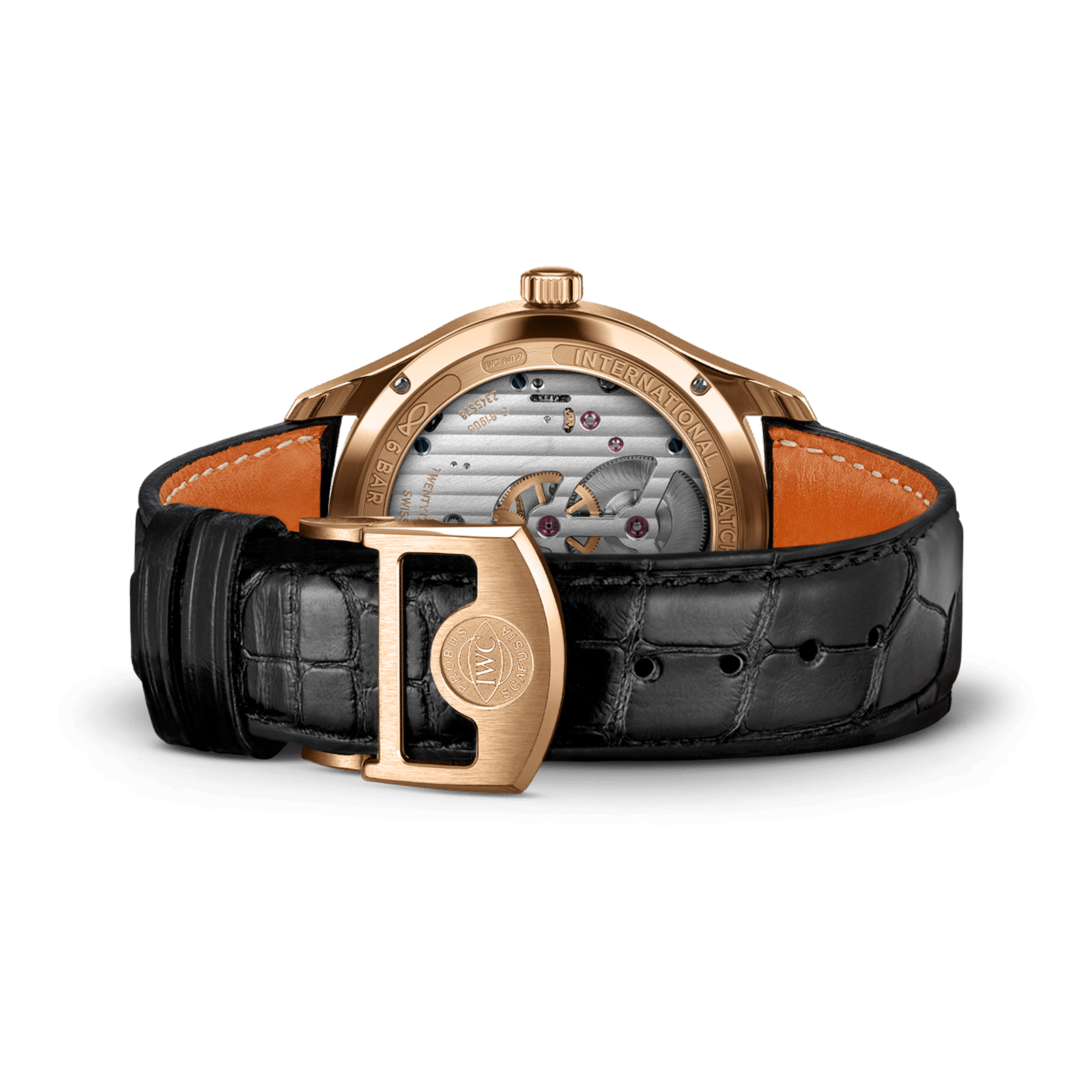 18 ct Armor Gold® case, Manual-winding, Diameter 42.4 mm, Black alligator leather strap by Santoni, Strap width 22.0 mm.