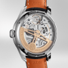 Developed by Kurt Klaus in the 1980s and composed of about 80 individual parts, IWC’s perpetual calendar is still the measure of all things when it comes to simplicity and technical elegance. All its displays are perfectly synchronized, and can be advanced simply by turning the crown. This version is equipped with a double moon phase display, showing a mirror image of the moon as seen by observers in the northern and southern hemispheres. Perfectly matching the colour of the two moons are the silver-plated dial, and the case made of shimmering platinum. This rare and extremely durable precious metal is sure to be just as beautiful in 577.5 years: the time from now that will require the moon phase display to be adjusted. Until then, the IWC-manufactured 52615 calibre movement ensures a precise rate. Fitted with components made of ceramic, the Pellaton automatic winding system builds up a power reserve of 7 days with the help of an 18-carat gold rotor.