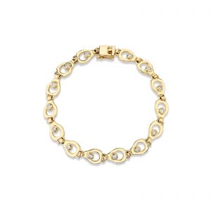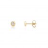 classic round bezel but with an extra kick – wider edge of gold circling the diamond, for a bigger appearing stone and more impact visually. great as 1st piercing or further up the ear