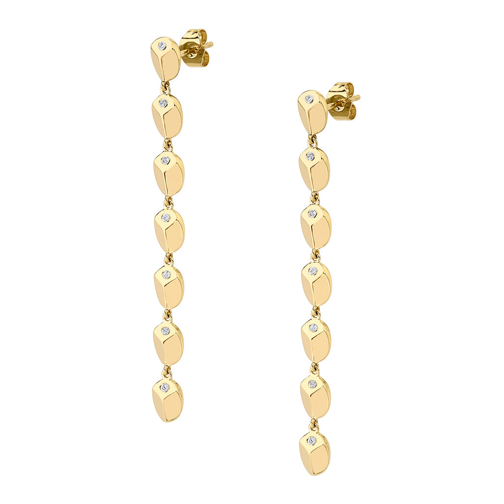 Infinite artistic form made to be worn. The three-dimensional elements articulated end-to-end create subtle movement, and the flush set diamonds in the top of each surface provide a little extra shine in the Carve Drop Earrings. A creatively compelling option to make a statement.