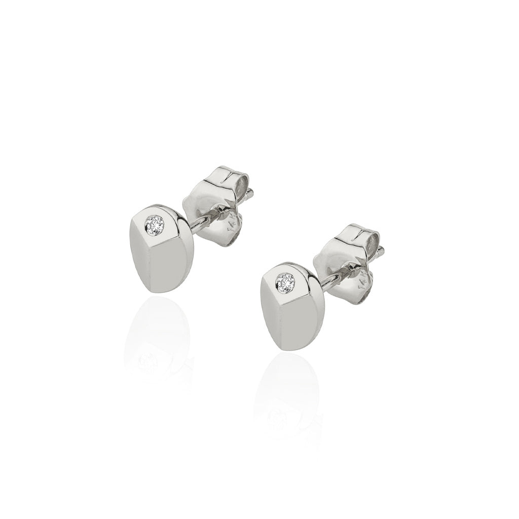 Artfully geometric proportion. The Carve Stud highlights the original design element that makes up this collection, perfectly isolated in a tiny stud with a flush set diamond for a little extra shine. A creatively compelling option for everyday.