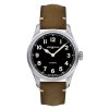The Montblanc 1858 product line is inspired by the legendary professional Minerva watches from the 1920s and 1930s which were conceived for military use and exploration. Reinterpreting these legendary timepieces, the Montblanc 1858 product line expresses the spirit of mountain exploration, embodying the modern trend of returning to nature. The 1858 Automatic comes in a 40 mm polished and satin-finished stainless steel case featuring slim beveled horns. The case back is also engraved with the emblematic Mont Blanc mountain, a compass and two crossed ice pick-axes, as a nod to the spirit of mountain exploration. For legibility and design, the black dial contrasts with historical luminescent cathedral-shaped hands with a “cloisonné” design that has been slightly domed for one of the finest finishes. Other details include beige SuperLumiNova*-coated Arabic numerals, a railway minutes track and the original Montblanc logo from the 1930s era with its historical font and emblem of the Mont Blanc mountain. The timepiece is equipped with a khaki-green nubuck calf leather strap.