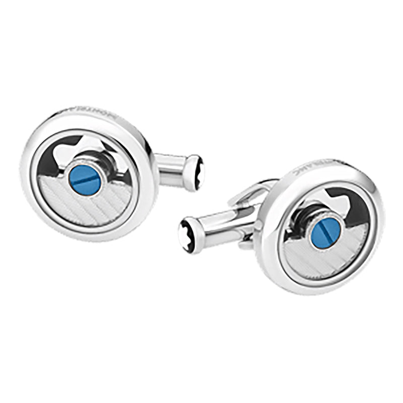 Montblanc Cuff Links, round in stainless steel with rotating disc 116668
