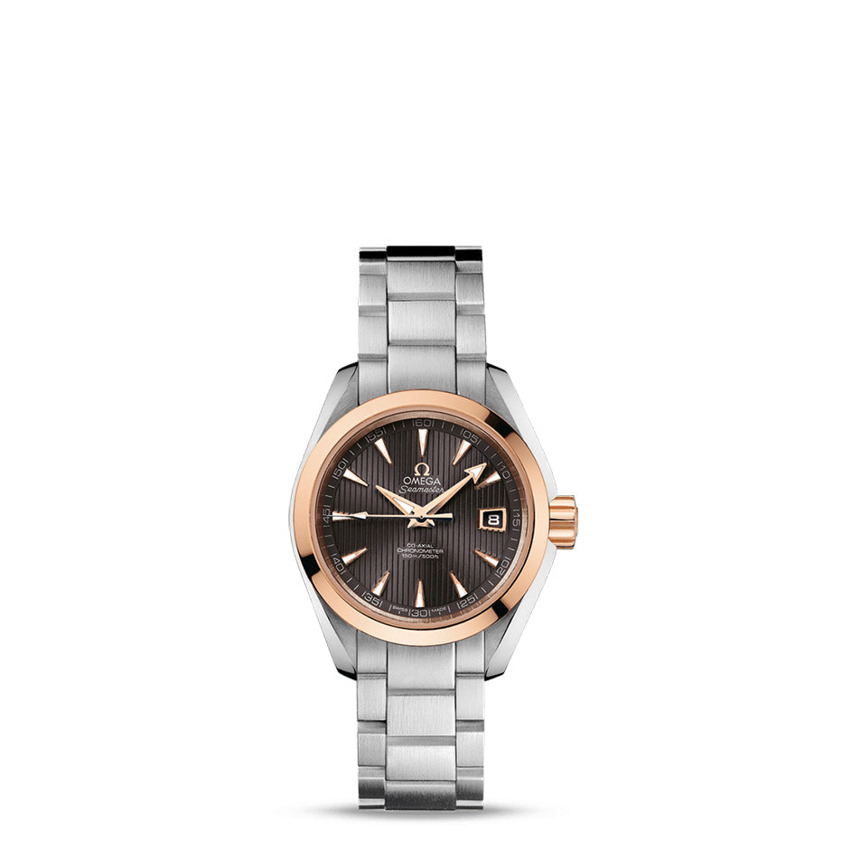 The 18K red gold bezel is mounted on a 30 mm stainless steel casebody on a stainless steel bracelet. This certified chronometer is powered by the OMEGA Co-Axial calibre 8520 which can be seen through the transparent caseback.