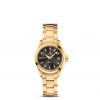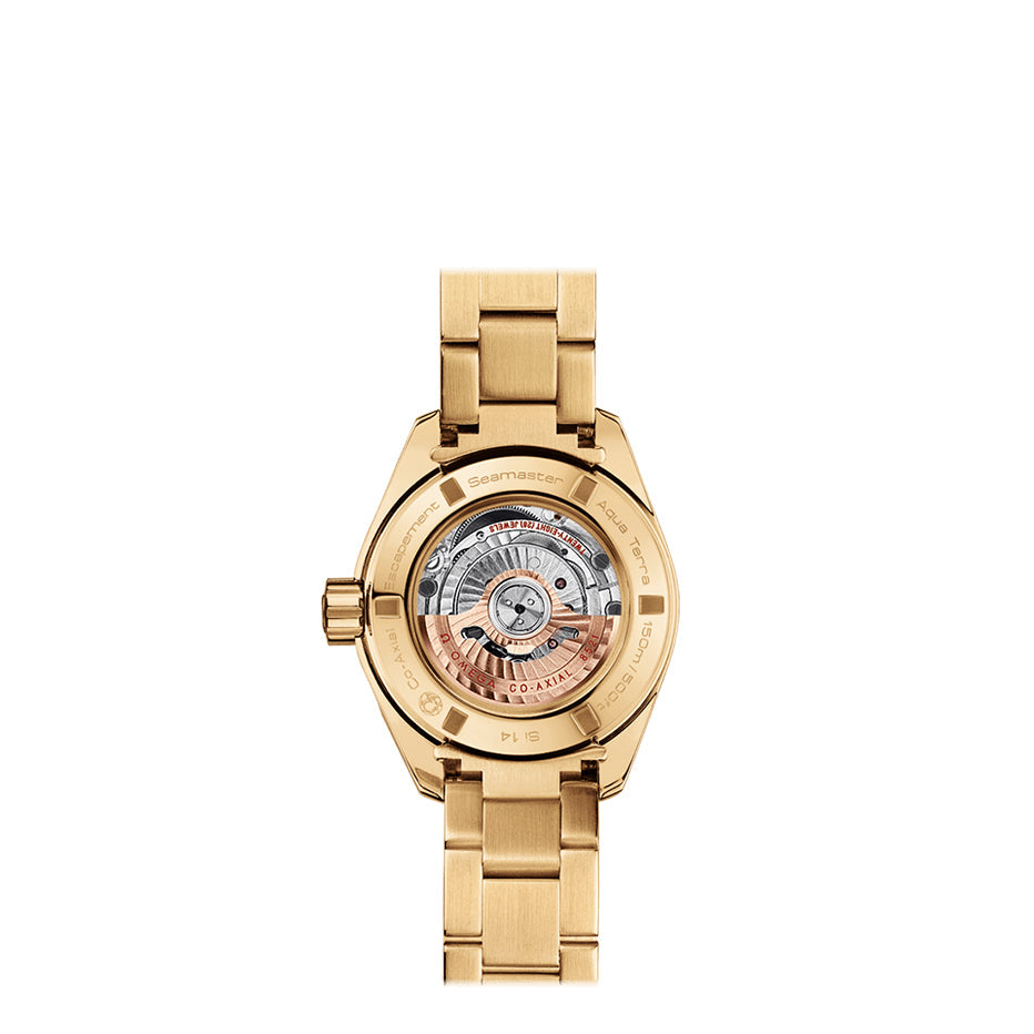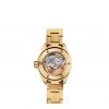 The bezel is mounted on a 30 mm 18K yellow gold case on an 18K yellow gold bracelet. This certified chronometer is powered by the OMEGA Co-Axial calibre 8521 which can be seen through the transparent caseback.