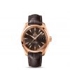 This model features a silvery dial decorated with the Teak Concept pattern. Month and date windows can be found at the 3 o’clock position. A scratch-resistant sapphire crystal protects this unique dial. The bezel is mounted on a 38.5 mm 18K red gold case on an 18K red gold bracelet. This certified chronometer is powered by the OMEGA Co-Axial calibre 8611 which can be seen through the transparent caseback.