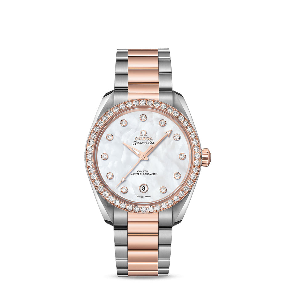 The bezel is diamond-set and the watch is presented on an integrated stainless steel and 18K Sedna™ gold bracelet. Driven by the OMEGA Co-Axial Master Chronometer calibre 8800, this wristwatch is certified at the industry’s highest standard by the Swiss Federal Institute of Metrology (METAS).