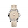 Presented on a beige leather strap, this timepiece is powered by the OMEGA Co-AxialMaster Chronometer calibre 8802, certified at the industry’s highest standard by the Swiss Federal Institute of Metrology (METAS).