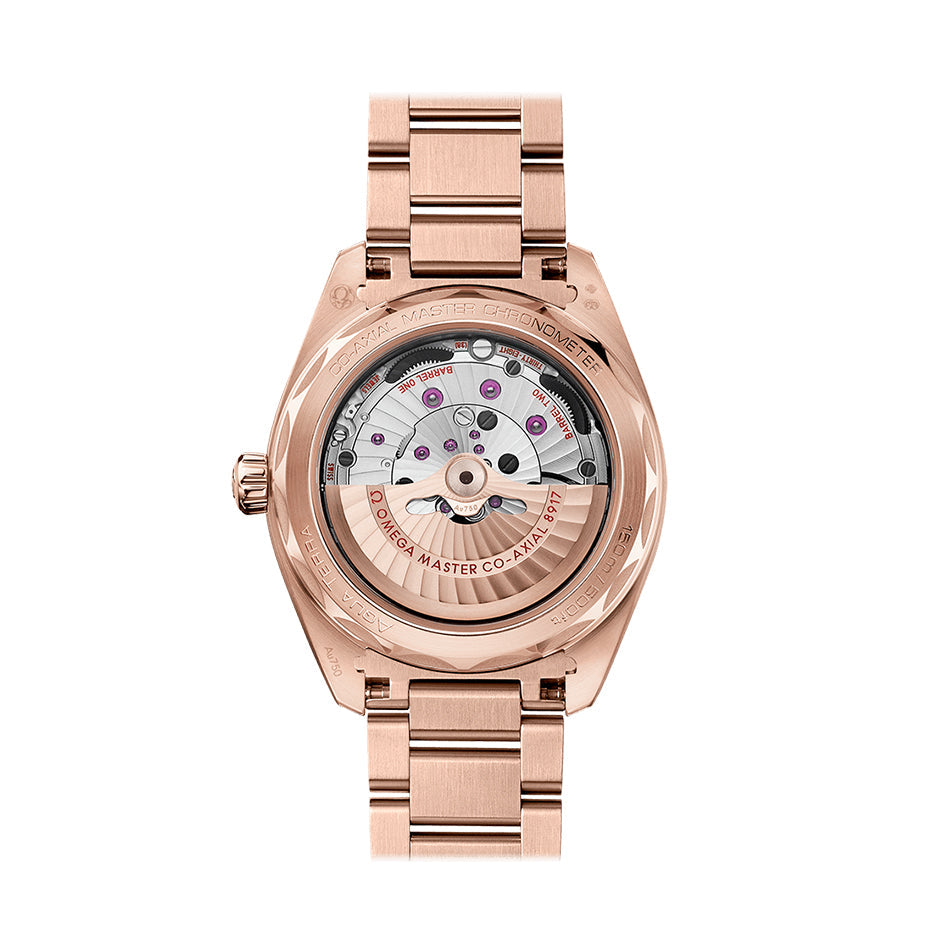 The Seamaster Aqua Terra is a superb tribute to OMEGA’s rich maritime heritage. In this 41 mm model, the symmetrical case has been crafted from 18K Sedna™ gold, with a wave-edged design featured on the caseback.