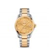 This model features a sun-brushed and lacquered champagne dial decorated with the Teak Concept pattern and a date window at 3 o’clock. A scratch-resistant sapphire crystal protects this unique dial.