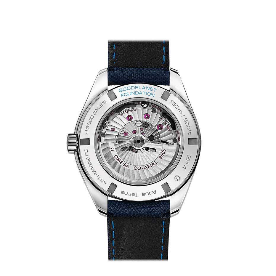 Designed as a tribute to the rewarding partnership between OMEGA and the GoodPlanet Foundation, the Seamaster Aqua Terra 150M GoodPlanet GMT combines innovative watchmaking with a wholehearted commitment to environmental conservation. OMEGA has pledged a portion of the proceeds from this watch to full funding “Time for the Planet”.