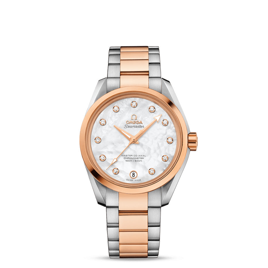 Equipped with one of the world’s most advanced mechanical movement, the Seamaster Aqua Terra Master Co-Axial is stylish, sporty and prepared for an active lifestyle. This luxurious model features a pearled mother-of-pearl dial with 11 diamond indexes in 18K gold holders.