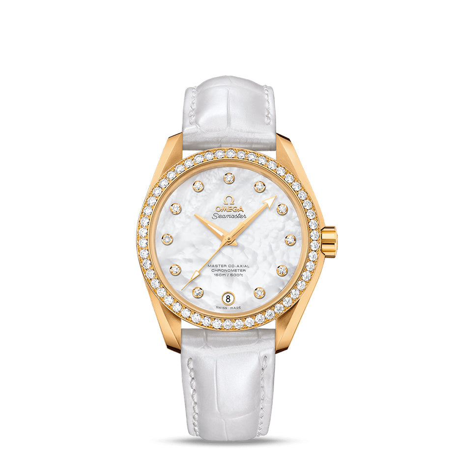 Equipped with one of the world’s most advanced mechanical movement, the Seamaster Aqua Terra Master Co-Axial is stylish, sporty and prepared for an active lifestyle. This luxurious model features a pearled white mother-of-pearl dial with 11 diamond indexes in 18K gold holders.