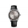 This 39.50 mm watch has a stainless steel case and a smoky dark grey lacquered domed dial with a captivating gradient effect. The hands, logo and indexes are 18K Sedna™ gold and there is a date window at 6 o’clock.