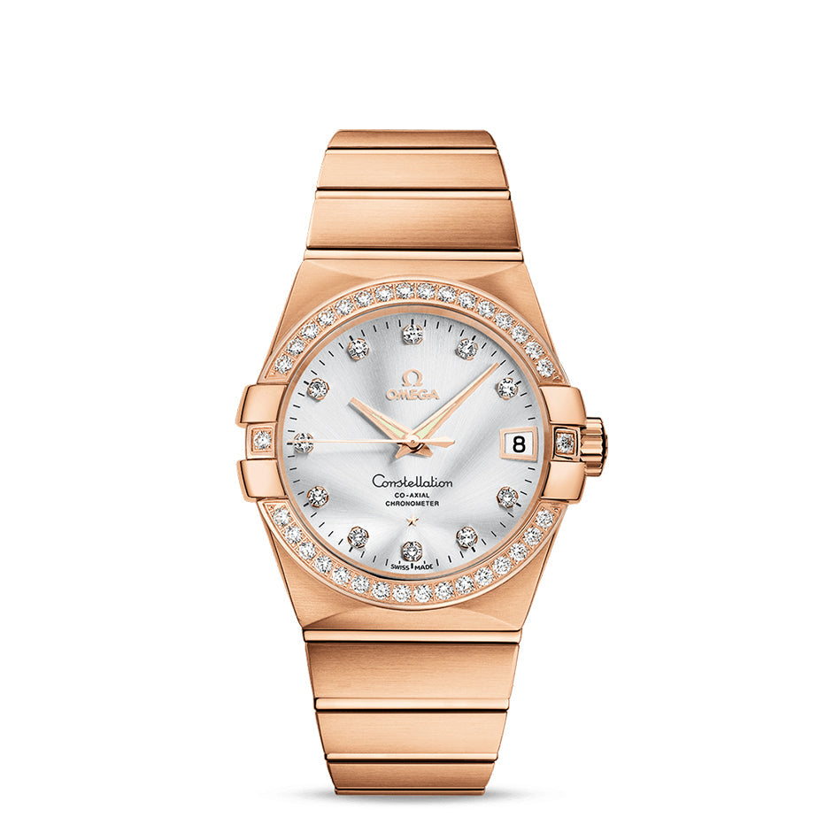 This model features a silver dial decorated with diamond-set indexes and a date window at the 3 o’clock position, and covered by a scratch-resistant sapphire crystal. The diamond-set bezel is mounted on a 38 mm 18K red gold case, and presented on an 18K red gold bracelet.