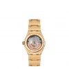 This 29 mm 18K yellow gold model features a diamond-paved bezel, blue aventurine glass dial with diamond hour markers and a date window at the 6 o’clock position. The bracelet, hands, OMEGA logo, Constellation star and diamond holders are also in 18K yellow gold.