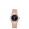 Crafted in 18K Sedna™ gold, it has a diamond-paved bezel and a date window at 6 o’clock. The hands, hour markers, OMEGA logo and Constellation star are in 18K Sedna™ gold.