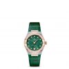Standout features on this 29 mm model are the dial made from natural green Aventurine stone and the shimmering leather strap in matching colour.