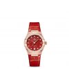 Standout features on this 29 mm model are the dial made from natural red Aventurine stone and the shimmering leather strap in matching colour.