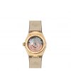 Replacing the famous mono-rang bracelet is a taupe-brown strap in shimmering leather.