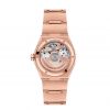 - Self‑winding movement with Co‑Axial escapement. Certified Master Chronometer, approved by METAS, resistant to magnetic fields reaching 15,000 gauss. Free sprung‑balance with silicon balance spring, automatic winding in both directions. 18K Sedna™ gold balance bridge and oscillating weight with Geneva waves in arabesque.