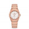This 36 mm 18K Sedna™ gold model features a bezel engraved with Roman numerals, an opaline white silvery dial and a date window at the 6 o’clock position. The hands, OMEGA logo, Constellation star and indexes are all in 18K Sedna™ gold.