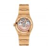 - Self‑winding movement with Co‑Axial escapement. Certified Master Chronometer, approved by METAS, resistant to magnetic fields reaching 15,000 gauss. Free sprung‑balance with silicon balance spring, automatic winding in both directions. 18K Sedna™ gold balance bridge and oscillating weight with Geneva waves in arabesque.