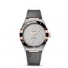 Presented on a grey leather strap with rubber lining, this timepiece is driven by the OMEGA Co-Axial Master Chronometer Calibre 8900, visible through the domed scratch-resistant sapphire crystal.