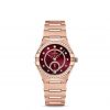 Presented on the iconic mono-rang bracelet with a butterfly clasp and easy comfort adjustment, the timepiece is driven by the OMEGA Co-Axial Master Chronometer Calibre 8803, visible through the domed scratch-resistant sapphire crystal.