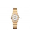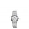 Diamonds arranged in a snow-set pattern pave the bezel, case and bracelet links. This timepiece, adorned with 1,762 diamonds, is powered by OMEGA’s calibre 1376, a precision quartz movement.