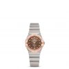 This 25 mm 18K Sedna™ gold and stainless steel model features a bezel engraved with Roman numerals, sun-brushed brown dial and scratch-resistant saphire crystal. The hands, OMEGA logo, Constellation star and diamond holders are also in 18K Sedna™ gold.