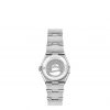 This 25 mm stainless steel model features a bezel engraved with Roman numerals, white mother-of-pearl dial with diamond hour markers and scratch-resistant saphire crystal. The hands, OMEGA logo, Constellation star and diamond holders are in 18K white gold.
