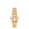 This 25 mm 18K yellow gold model features a bezel engraved with Roman numerals, white mother-of-pearl dial with diamond hour markers and scratch-resistant sapphire crystal. The bracelet, hands, OMEGA logo, Constellation star and diamond holders are also in 18K yellow gold.