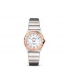 The stainless steel bezel, with its engraved Roman numerals, is mounted on a 27 mm stainless steel case and is presented on a matching bracelet. This timepiece is powered by the OMEGA quartz calibre 1376.