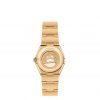 This 28 mm 18K yellow gold model features a bezel engraved with Roman numerals, white mother-of-pearl dial with diamond hour markers and scratch-resistant sapphire crystal. The bracelet, hands, OMEGA logo, Constellation star and diamond holders are also in 18K yellow gold.