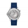 This 42 mm model is crafted from stainless steel and includes a blue ceramic bezel with a white enamel diving scale. The dial is also polished blue ceramic and features laser-engraved waves and a date window at 6 o’clock.