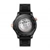 This 43.50 mm model, cased in black ceramic [ZrO2] and Sedna™ gold, has a black ceramic dial with laser-ablated waves in positive relief. The polished Sedna™ gold indexes and facetted hands, filled with white Super-LumiNova, contrast beautifully with the black dial. Completing the look is an integrated black rubber strap with black ceramic buckle.
