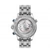 This 44 mm chronograph model is crafted from stainless steel and includes a polished blue ceramic bezel with a white enamel diving scale. The pushers are also polished blue ceramic, as well as the dial which features laser-engraved waves and a date window at 6 o’clock.