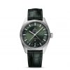 This watch has a green leather strap and is driven by OMEGA’s Co-Axial Master Chronometer Annual Calendar Calibre 8922, featuring revolutionary anti-magnetic technology.